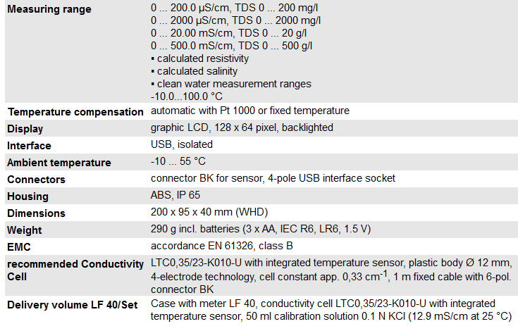 Sensortechnik Meinsberg - Model LF 40 -Conductivity Portable Meter