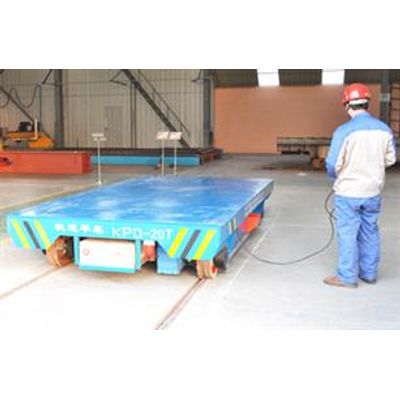This cargo handling cart is powered by the conductor rail. 380v AC power is step down 36v safe voltage through transformer and separately connect with rails. Then electricity is passed to the cart by wheels . Hydraulic lifting device is installed to facilitate load and unload.