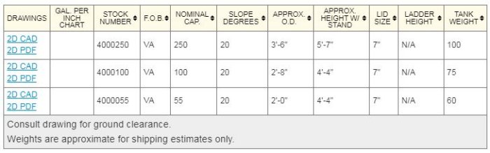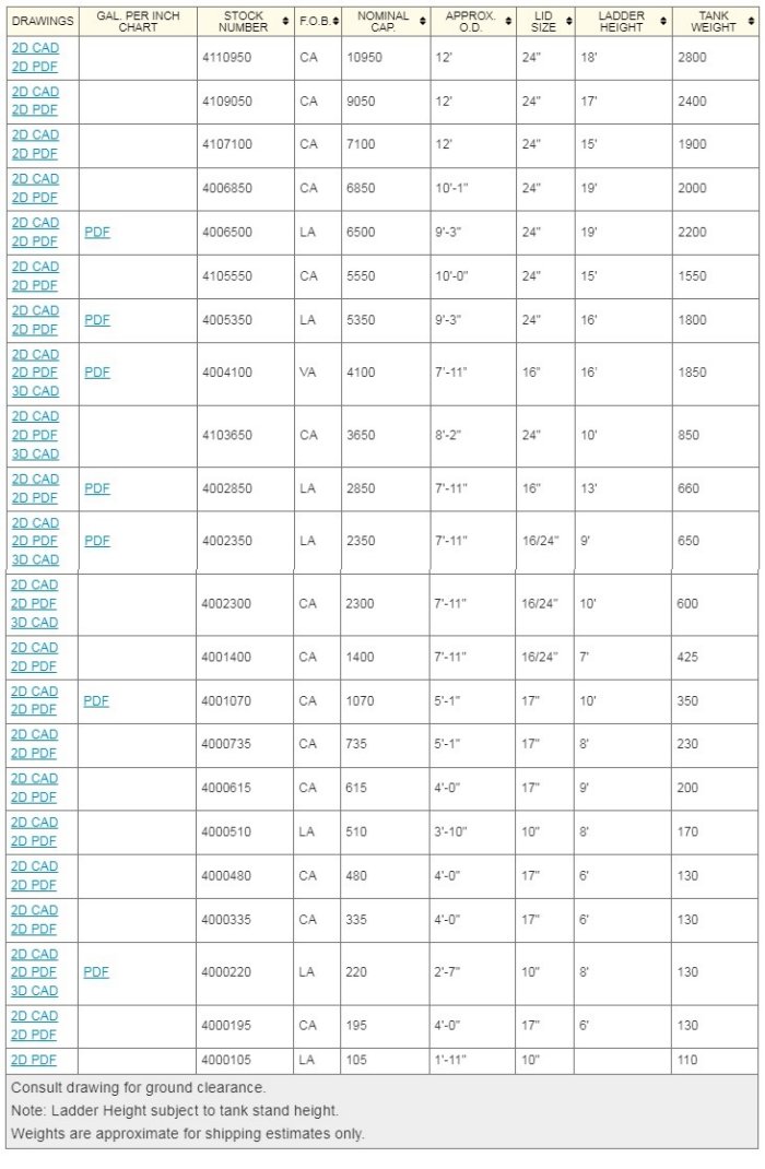 Choose the factory closest to you for the best freight rates. If a tank from a more distant factory is required for volume or dimensions, we may be able to equalize freight to make it the same as another choice. We have trucks that go between factories and other arrangements. Please inquire through your salesperson for details.