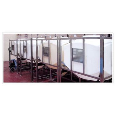 Suitable for handling or storing powders, granules or liquids. Metallic structure in painted carbon steel (galvanized or stainless steel), handling by transpallet, forklift or crane. Emptying devices through bulkhead socket, or male thread from 1 "to 4" for total discharge obtained from the mold. Alternatively, a pair of aluminum half fl anges to which closing devices from 200 to 300 mm can be applied. Specific frames on request, the wineskin can be supplied separately. NO ADR