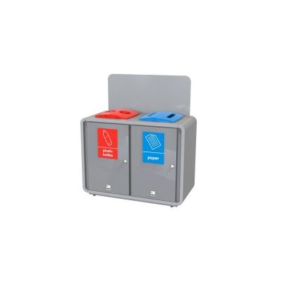 Configurable to suit your specific requirements. Front door opening, pull out 90 Litre Plastic Liner. Plastic sack holding – standard 18”sack. Triangular plunge-lock for each door (plastic key). Available in a variety of surface finishes. WRAP compliant colour coded apertures and graphics as standard. Lightweight, Dibond, aluminium composite, up-stand panel to carry the airport’s message.