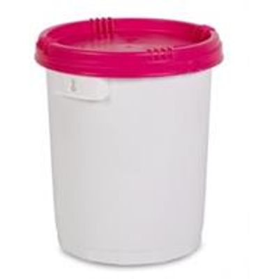 Shape: Round, conical (tapered). Dimensions (mm, Diam. x H): 336 x 383. Volume (L) under lid: 20.5. Closure type: Twist on and off. Raw material(s): PP base, PP or HDPE lid. Tamper Evidence: Yes, seal-ready. Handles: Two integral side handles. UN code: 4H2/X22/S.