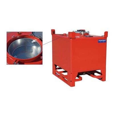 UN type approved (31A) IBC for liquid waste. For the safe storage and transport of liquid waste, such as oil. Inlet with a D400 strainer. Standard color is red RAL3000. The container can be easily drained by a vacuum truck.