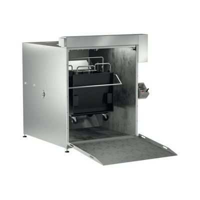 With this semi-automatic washing system, containers up to a capacity of up to 1,100 liters are cleaned inside and outside in a closed cabin. The container is inserted manually. The cabin gate is closed manually or automatically by pressing the start button. Depending on the version, the inside and outside cleaning is carried out alternately or simultaneously. After the washing process is finished, the cabin door opens and the cleaned container is removed.