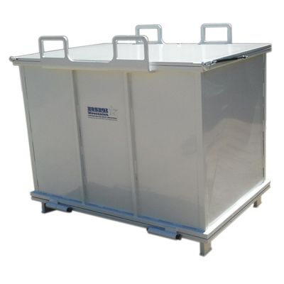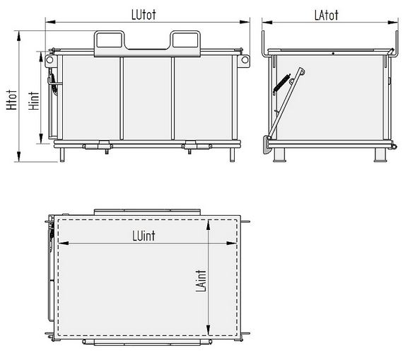 "ETERNAL" line: container with openable bottom designed for soundness and durability. The product can be used in several applications, it is particularly suitable for recycling and differential collection of waste. The ETERNAL container is suitable to be used inside the buildings of the factory, it has a nonhermetic bottom so it is a perfect solution for those firms where are not produced liquid waste material or waste material filled with oil, solvents or similar substances. The container can be realized with openings or special hooks for inserting the forks for lifting. A fork lift truck must be used for removing the waste material from the container. The container has to be lifted with the fork lift truck , then the operator can discharge the waste material pulling the operating lever using a rope when resting on the driving place.