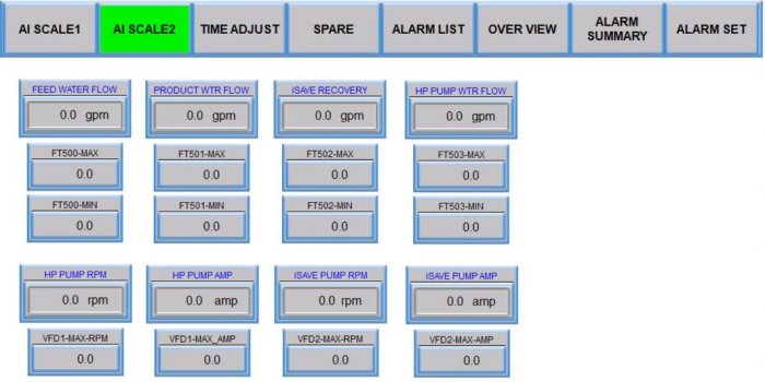 Flow meters provide feed water, product water, and concentrate water flow rate data to the user.
