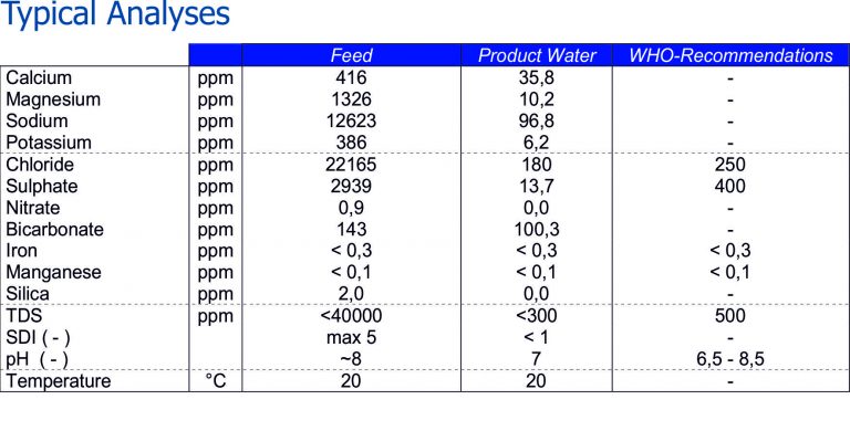 - Low specific water costs due to high energy efficiency: ~2,5 kWh/m3 (with energy recovery)