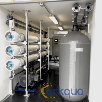 Our ARKQUA200 system is designed to produce 200 M3D of potable water. ARKQUA; Systems provide all what you need on a single container, RO, CIP flushing and MMF are also included, no need for extra space. ARKQUA containerized seawater desalination systems are designed to provide fresh water for Municipalities, hotels, resorts, Communities in expansion, as well as to the industrial and aquaculture and agriculture markets.ARKQUA® systems are a pre-designed and pre-engineered “plug and run” truly containerized seawater desalination solution, 100% modular, which provides the flexibility and scalability to growth your plant capacity and footprint step by step based on your unique water needs.