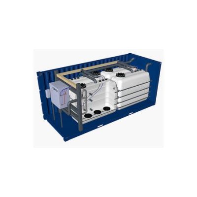 Easy to transport (standard 20 ft container). Pre-engineered and modularized design. Quick set-up and take-down (plug-and-play). Low power use (1.2 kWh per treated 1,000 l). Designed to treat to 10,000 l per day. Parallel connection possible for bigger amounts of wastewater.