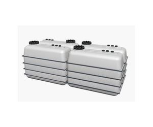 A total of four single-wall containers of high-quality plastics (HD-PE) with a specific volume of 4,000 litres each are accommodated in the system. The material used is light, robust and resistant against all wastewater substances. Each container features a large treatment dome and 3 smaller screw connections for hoses. Surrounding galvanised steel bandages provide the containers with the necessary stability for free installation.