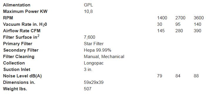 Suction Unit: The vacuum provides outstanding suction performance. The suction is provided by a six stage vacuum pump connected with a propane engine by a belt transmission system. Thanks to the quick cover release system it is easy and very quick to maintain. A vacuum gauge enables constant checking of the suction performance, and detecting possible clogging of the filter. A diffuser filter reduces the speed and noise of the air on the exhaust outlet.