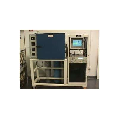This system was designed to measure the volume of oil present on small radiator cores for a major automobile parts manufacturer. The part is heated in the environmental chamber on the left so that the oil on the part is burned and turned into gas. The analyzer measures the gas and sends the signal to the computer system for analysis. The computer then calculates the volume of oil present.