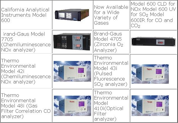 Other analyzers are available upon request (different gases and different manufacturers).