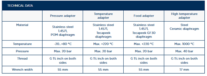 - With adapter, usable up to 220 °C and 20 bar
