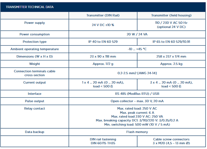 - Output: 4…20mA, Modbus, Profibus
