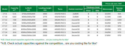 - Models CT14-CT28 feature mudguards and tail door lights