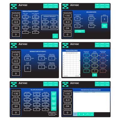 The interactive eCabinet provides a “real time” assessment of the vacuum sewer system. Prior to the interactive eCabinet, data was derived from system operators traveling to the job site, collecting data, analyzing, and developing a report. With the invention of the interactive eCabinet, key performance indicators are analyzed, computed, and displayed in real time at the control panel. The interactive eCabinet displays helpful system information, including: Preventative maintenance log, Pump oil life calculator, Modulation information and parameters, Sewage pump efficiency, System air-to-liquid ratio, Preventative maintenance and troubleshooting tutorial videos.