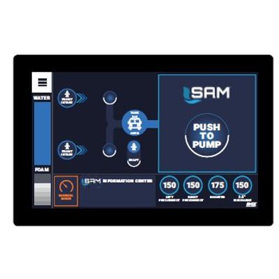 SAM is an integrated total water flow control system that manages your truck’s, pump, tank, intakes and discharges. A touch-screen display, provides a simplified interface that totally transforms traditional pump operations. The SAM control system provides complete control of the flow to and from the pump from two interfaces, the SAM control center and the pump controller. INTRODUCING: The NEW SAM Smart Nozzle with N2P Technology is an option on all new and existing SAM Integrated Total Water Control Systems. Emergency Responders: Learn more about SAM at samflows.com