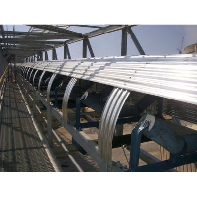 RPS Engineering’s CHLC-Series hood assembly is a ¾ corrugated cover and band with a 135° coverage. Because the corrugations are parallel with the belt, these are a more economical cover system. They are stationary with a standard 45° opening. This allows for inspecting or viewing the items being conveyed and the ease of repairing, replacing, greasing or inspecting of the idlers without touching the cover assemblies. They help to protect the belt, idlers and material being conveyed from the hot sun, wind, snow, rain and other damaging weather elements.