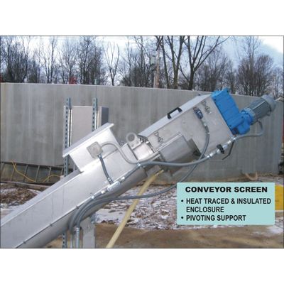 Screenings are washed of organics and dewatered during transport in the screw conveyor housing, reducing discharged screenings volume, odor and moisture content for easier and less expensive off-site disposal. Organics laden reject water is returned to the process.