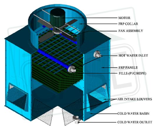 • Rectangular/ square Shaped Counter Flow, Induced Draught design.