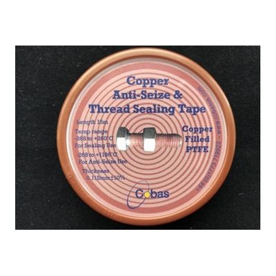 COBAS COPPER ANTI-SEIZE TAPE is a unique product designed to permit the easy assembly and disassembly of threaded components.It takes the place of messy and potentially contaminating anti-seize compounds. Cobas Copper Anti-Seize Tape is manufactured from a copper filled PTFE resin. The PTFE provides excellent lubricity while the copper flakes act as slide or bearing plates between the two mating surfaces. Thus, the tape helps prevent galling during assembly and disassembly of components. When wrapped around a thread, Cobas Copper Anti-Seize Tape seals it from corrosive substances or any dirt or grit likely to cause seizure. Cobas Copper Anti-Seize Tape also prevents components from vibrating loose.