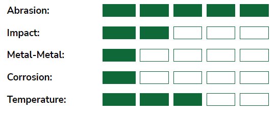 - The deposit is suitable for hardfacing components subject to extremely severe abrasive wear and moderate impact