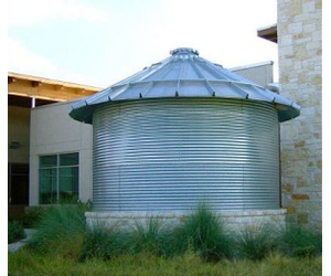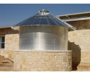 Oversized roofs on tanks are a common practice to achieve a more aesthetically appealing roof line with water tanks. Often times this is done to match the profile of masonry or a stone wall covering the exterior of tank or to match the roof line of an existing building or structure. CorGal roofs are regularly used on structures that do not hold water in order to create a visual architectural impact. In fact, entire tank shells are a popular option for building enclosures and dwellings. Oversized roofs provide a soffit which also allows for unique and custom lighting options that a standard roof may not allow.