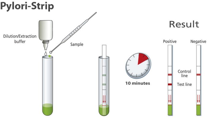 Immunochromatography test for the detection of Helicobacter pylori antigens in human stool samples.