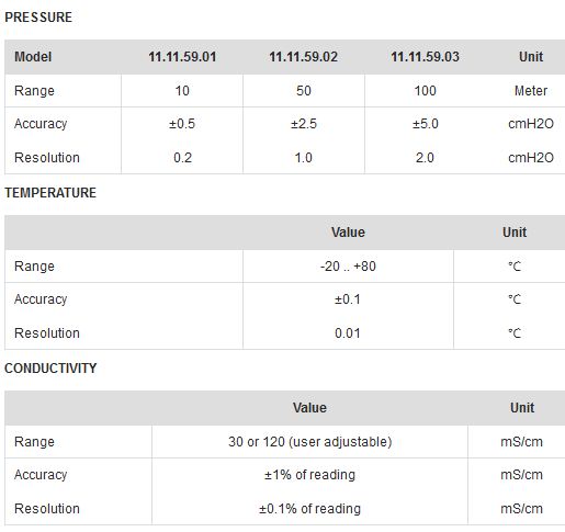 Durable and robust water level and datalogger. Housing is corrosion proof. Conductivity range of 0 to 120 mS/cm. Long-term solution for monitoring saline environments. Available in various measuring ranges.