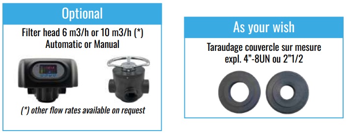 Other filtration heads are available on request if higher flows and velocities are required