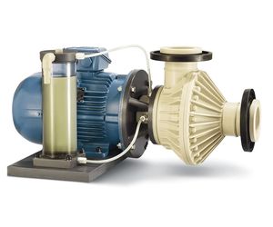 OMA pumps are also available with double mechanical seal flushed by liquids: with this execution, the traditional features of the conventional single seal (product side) are joined by the advantages of a secondary seal (atmosphere side). The double seal allows the plastic pump to work in critical conditions and even when there is no liquid (dry running). This solution prevents the seal faces from sticking and facilitates the pumping of liquids at very low temperatures, with crystals, oxides or solid deposits. Consequently, it represents an additional safety mechanism against dry starting or the formation of scale.