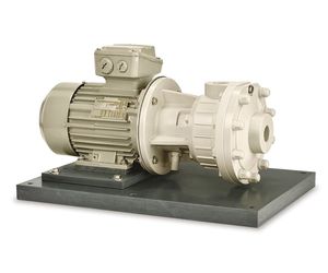 Close coupled horizontal plastic pump with corrosion-resistant mechanical seal