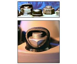 Radolid Protection Caps are easily installed by pressing the cap onto the bolted joint by hand. The barbed edge snaps on and prevents the caps from accidental removal. Radolid Caps are reusable and can be reapplied to 2-3 times. To ensure against corrosion from condensation accumulating in the caps, we recommend brushing nuts with Kleergel Corrosion Inhibitor Grease.
