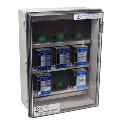 The PS-7 sensor stocker holds up to 9 sensors. The stocker keeps the cells charged and ready-to-go as soon as you need them. Runs on 24V of power and plugs right into the wall.