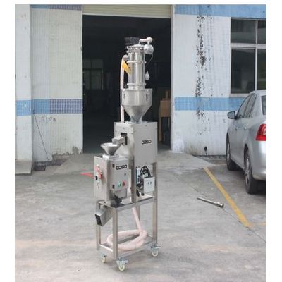 Automatic feeding metal separator combination(can be equipped with a variety of vibration feeding machine and vacuum suction machine)is used to detect and separate all the metals including iron and non-ferrous metals (such as copper, aluminum, stainless steel) and so on in food powder. Such as flour, banana powder, wheat powder and so on. In the process of making food powder, there will be some metal impurities mixed in it and enter production. As a result, it will increase downtime so that increase costs and affect production efficiency. This equipment can save the labor cost of manual feeding, and is suitable for the customers with large material requirement. It has the advantages of durable, large suction force, long service life, etc. And it can realize automatic feeding with automatic feeding machine just for food powder.