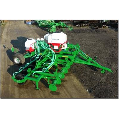 Terracast metred seeder / pellet applicator are mounted on the frame with outlets fitted either on the subsoiler legs or immediately before the Razor Rings. The shallow working Micro-Wing Tines are followed by targeted seeding and razor ring `leg zone` press wheels which focus consolidation over the seeded areas within the cultivated `leg zone` ensuring consistent seed depth and coverage with minimal moisture loss. The result is rapid and even emergence of the crop which allows for treatment with pre-emergence herbicide and help with the slug pressure burden.