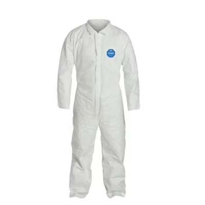 DuPont Tyvek 400 Coverall. Comfort Fit Design. Collar. Stormflap. Open Wrists and Ankles. Elastic Waist. Serged Seams. Pin Lock Slider Zipper Pull. White.