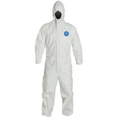 DuPont Tyvek 400 Coverall. Comfort Fit Design. Stormflap. Respirator Fit Hood. Elastic Wrists and Ankles. Elastic Waist. Serged Seams. Pin Lock Slider Zipper Pull.White.