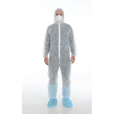 Disposable PPSB. Weight: 30 - 50 gr/m2. Elastic at hood/ collar, wrist and ankle. Zipper and covered with flap. Colour: white, light blue, light green, red.