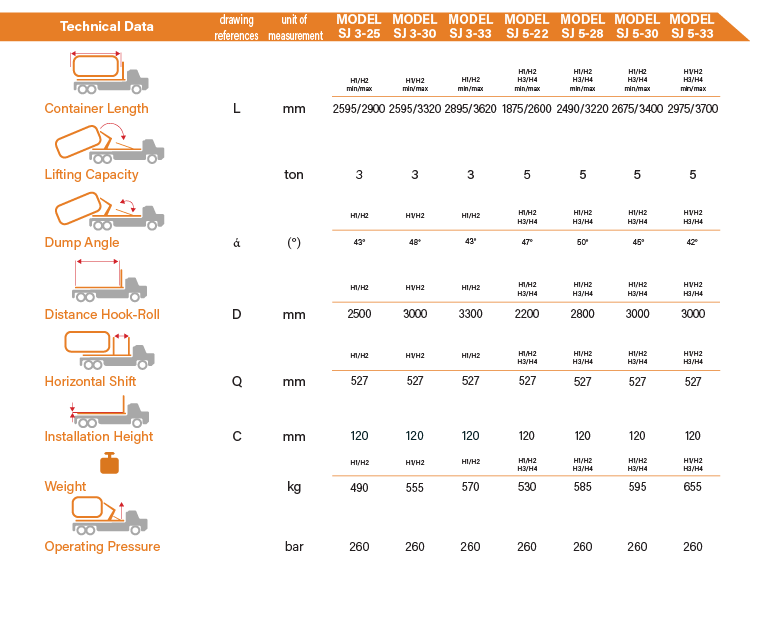 - CPS hook lift model, over 5 Ton lifting capacity