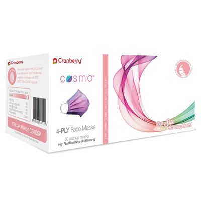 Explore the mind and awaken your senses with Cranberry’s new dual color masks! Cosmo Face Masks offer ASTM Level 3 protection with high fluid resistance and greater than 99% BFE/PFE at 0.1 micron. Quad-Fold® design provides greater comfort with 15% more breathing volume. Nose and chin adjustment strips for custom fit and protection. Available in 3 iridescent dual colors for a unique dynamic visual appeal - Comet Blue, Galactic Green, and Stellar Purple.