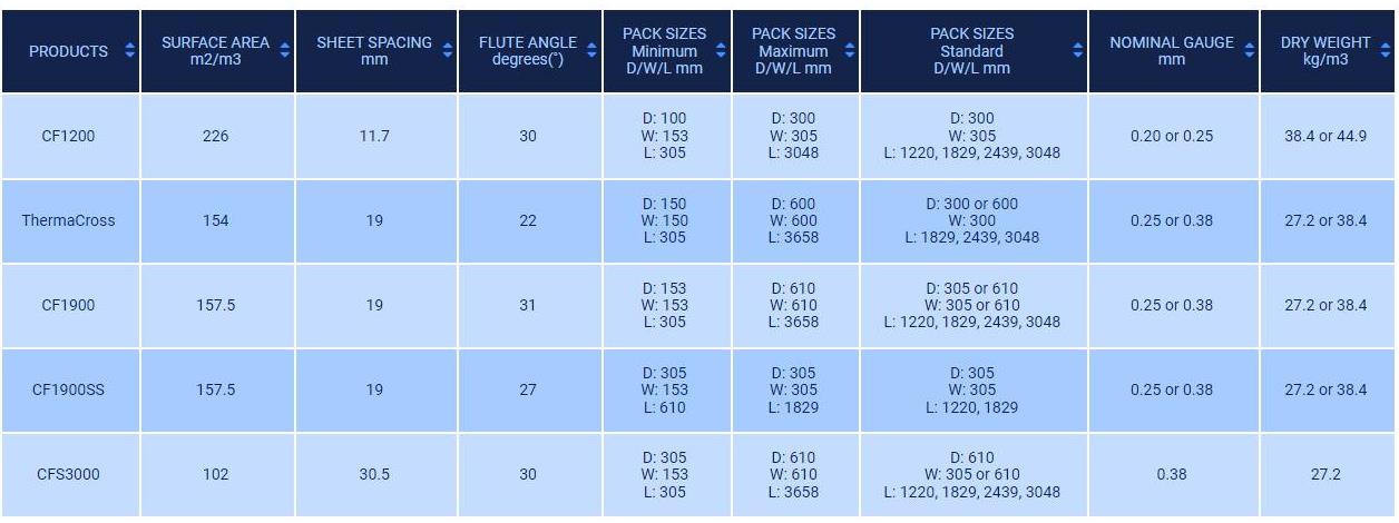 The engineered microstructure incorporated into cross-fluted fills enhances water distribution and thermal mixing.