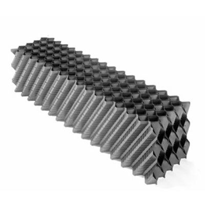 Opti-Pac 3000 is a cross-fluted film fill media manufactured from rigid PVC sheets conforming to CTI STD-136 for cooling tower heat-transfer applications. The media is fabricated from corrugated PVC sheets that are solvent welded for maximum strength and resistant to UV, rot, fungus, organic / inorganic solvents, acids, alkalis, and chemicals normally found in cooling tower waters.