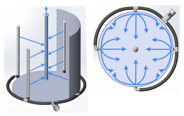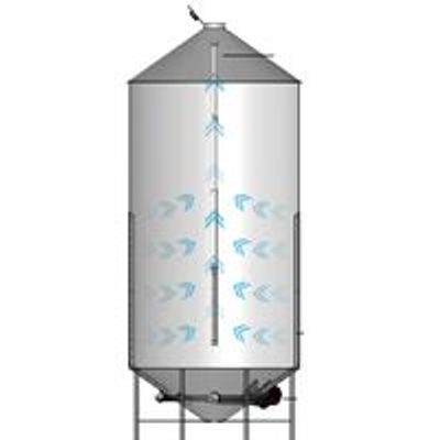 The CrossFlow system forces air through the bin by using columns mounted on the inside walls of the grain bin. The air then moves horizontally to the GrainAir Tube in the center of the bin where heat and moisture are released.
