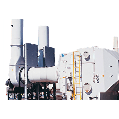 Tri-Mer industrial scrubbers have two stages. The first stage removes contaminant from the air stream and may be continuously wetted to facilitate mass transfer from liquid to gas phase. Stage two is a mist eliminator. As gases enter the scrubber, a spray header initiates gas/liquid contact. Gases pass through the packing, and mists impinge on the packing. Droplets are rinsed from the bed and soluble gas contaminants are absorbed.