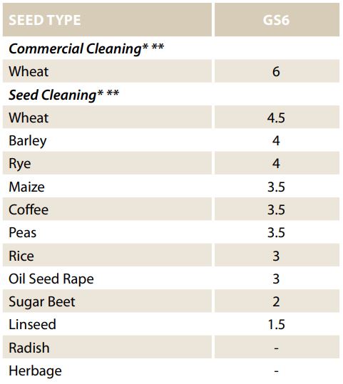 *Capacities given are in tonnes per hour, and are subject to the seed quality, moisture, impurities and quality of separation required. **Capacities stated are for guide use only and actual capacities may be greater or smaller than stated.