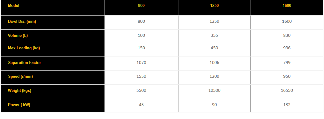 The scraper bottom discharge centrifuge can automatically realize feeding, separation, washing, dehydration, drainage, unloading, washing and other processes under full speed operation. It has the characteristics of novel structure, stable operation, high automation degree, low labor intensity, large production capacity, good washing effect and low moisture content of filter cake. It is suitable for separating solid suspension with particle size greater than 0.015mm and concentration range of 25-60%. It is suitable for solid-liquid separation in chemical, food, pharmaceutical and other industries, such as starch, citric acid, amino acid processing.