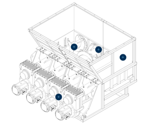 Production waste – gypsum plasterboards as well as gypsum scrap – is crushed in order to be recycled in the production process. You just fill the hopper with complete boards and/or scrap and the crusher will do the rest – the paper will more or less be separated from the gypsum. The size of the output is your choice in the flexible cutting system. In the outlets you can mount the hole disc with hexagonal holes in order to bring down the ourput size.