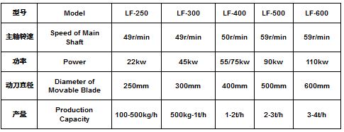 This machine consists of the movable blades on the main shaft and the fixed blades in the main body, With the movement of the driving shaft, the rubber material is crushed and cut continuously in the machine by blades, then the Material is forced to the outlet by the driving shaft, after that the scrapers on the outlet cuts the rubber being extruded into even smaller pieces. The size of the outlet is adjustable to feed different requirements of product size.